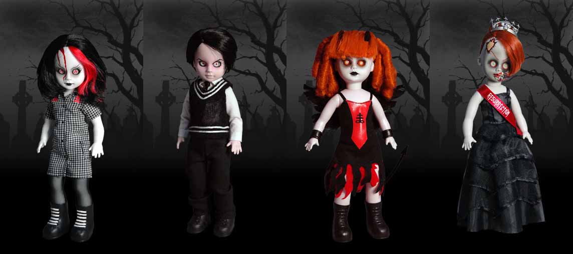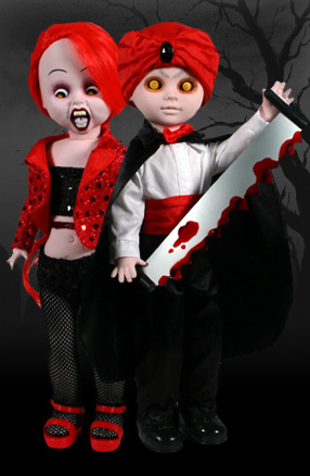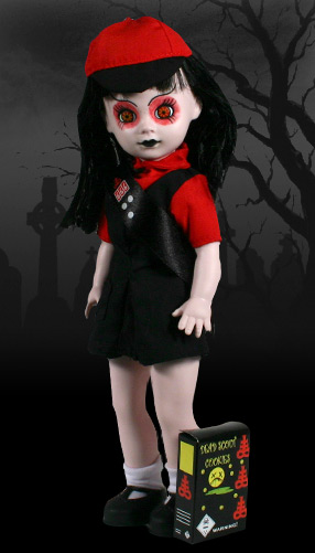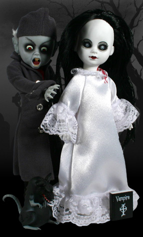像 電影致敬(敬禮....), 這裡的Living Dead Dolls Present是把電影, 文學, 藝術作品中有名的角色進而製作成娃娃, 幾乎所有的娃娃都從20世紀有名的恐怖電影而來, 喜歡恐怖片的朋友們別錯過了, 大部分的LDD present娃娃都是裝在長條形的窗盒裡, 跟普通的棺材包裝有些許不同.